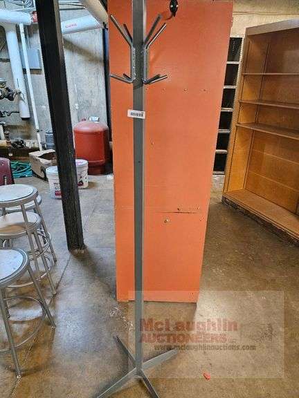 LOT 647 - Metal Coat Rack, Silver, 8 Hooks, Cross Base