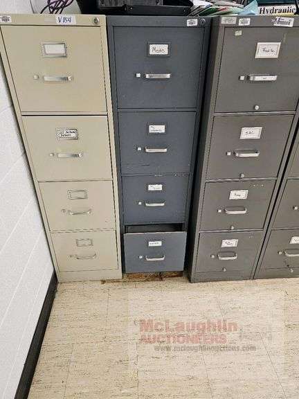 Vertical Filing Cabinet, 4 Drawers, Beige and Gray, Metal Construction, overall dimensions generally 15" W x 28" D x 52" H