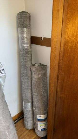 Gray Area Rugs, Geometric Pattern, Synthetic Material, likely polyester or polypropylene, rolled for storage/shipping.