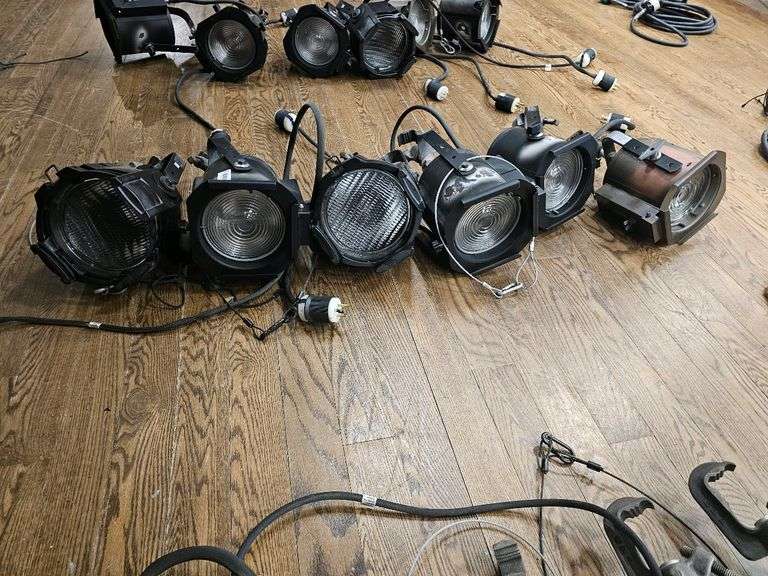 Fresnel Stage Lighting with Metal Housing, featuring a Fresnel lens, tungsten halogen light source, supports manual and DMX control, beam angle adjustable from 12° to 60°, weight 10 lbs (4.5 kg), dimensions 12 in x 10 in x 10 in