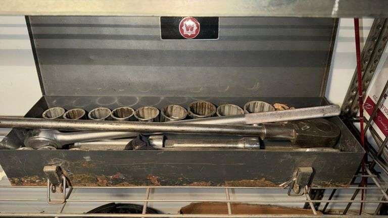 Wright Socket Set, includes 1-3/4 inch socket, steel alloy material, typical drive size 3/4 inch, approximately 10-12 pieces, case included, Wright logo visible, manufactured in USA.