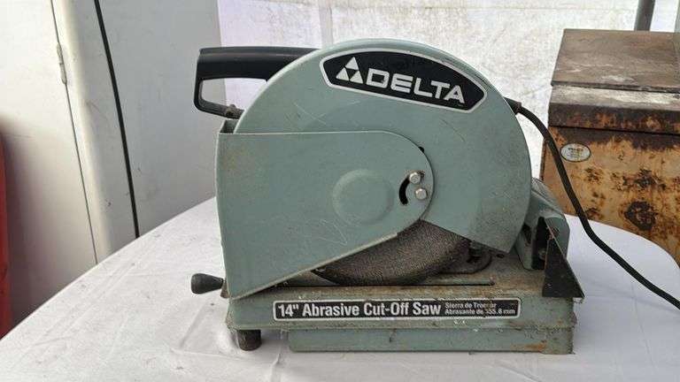 Delta 20-140 Abrasive Cut-Off Saw, 115 V, 15 A, 3900 RPM, single-phase, frequency 60 Hz, includes a 14-inch abrasive blade, Serial Number: D9806.