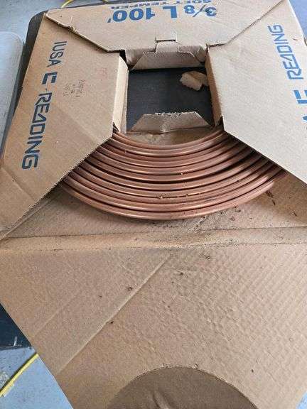 IUSA Reading 3/8" Copper Tubing Coil, 100ft Soft Temper, ideal for HVAC, Plumbing, Refrigeration, packaged in a cardboard box.