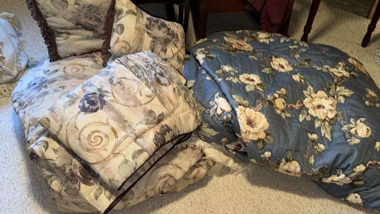 King size Floral Comforter and Pillow Set, Blue and Beige Patterns, Queen or King Size, Likely Cotton or Polyester Blend, Standard Pillow Size, Machine Washable