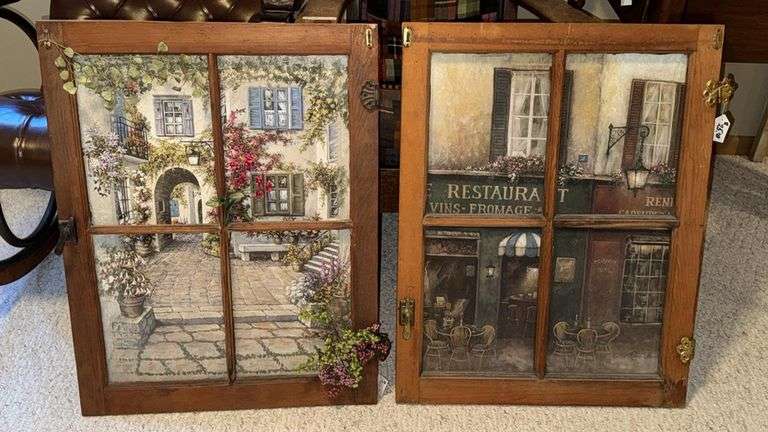 Vintage Window Art, Impressionist Style, 22" x 28 1/2" with Wood Frame, Earth Tones and Pastels, Faux Flowers and Foliage Embellishments, Mid 20th Century, Approx. 10 lbs.