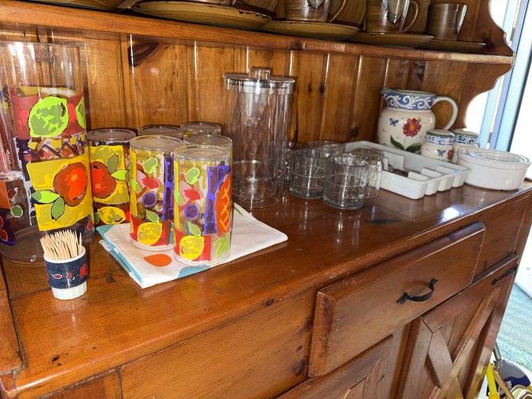 LOT 478 - Colorful plastic drink set, silverware, stoneware