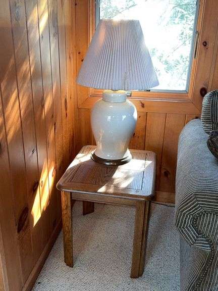 Table measures 23” x 19” x 19”. Lamp is 30”
