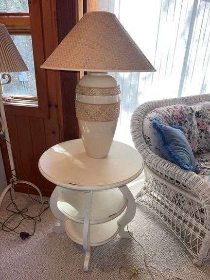 Measures 25 inches round by 26 inches high. Lamp measure 33 inches high.