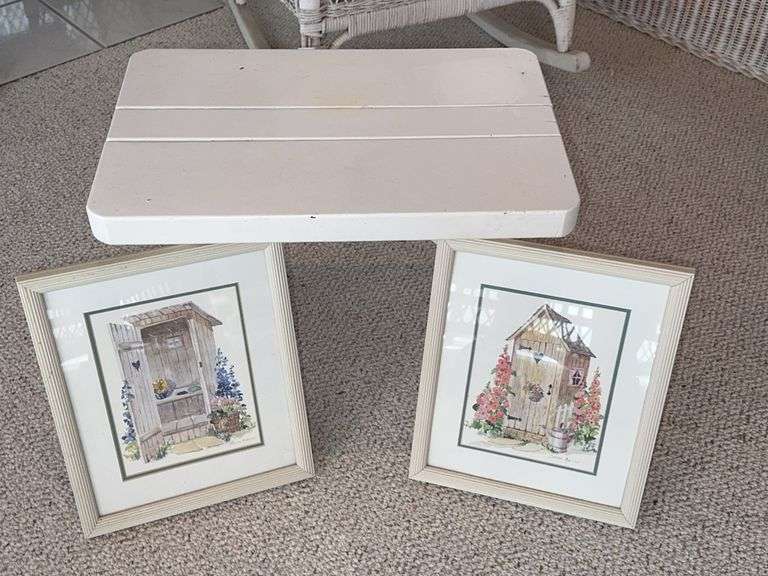 Pictures measure approximately 11 x 13. Stool measures 19 x 13 x 17” high