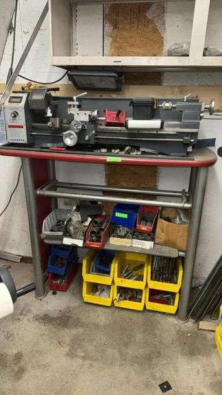 Variable Speed Mini Lathe MX-750, 1500-2250 RPM, MT5 Spindle, Max Swing Over Bed 220mm, Spindle Hole Diameter 38mm, Included Accessories: Cutting tools, gears, caliper, pliers, clamps. Does not include parts bins