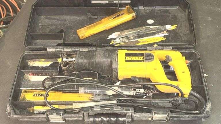 DEWALT DW303 Reciprocating Saw, 120V, 6.5A, includes Stroke Length 1 1/8 inch (29 mm), 0-2400 SPM, Corded Electric, Weight approx. 7.0 lbs (3.2 kg), Dimensions approx. 19 x 4 x 7 inches (48 x 10 x 18 cm), Reciprocating Blades included, Variable Speed, Cord Length approx. 8 feet (2.4 meters), Serial Number 216805.