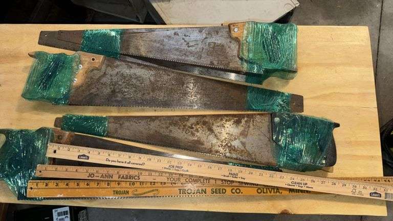 LOT 195 - Vintage Hand Saws and wood yardsticks