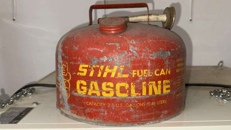 STIHL Fuel Can, 2 Gallon capacity, Red Metal, Chain Saw Fuel, includes instructions printed on the can. Ideal for storing gasoline, capacity 2 U.S. Gallons (7.57 liters), metal construction, approximate dimensions 12 x 8 x 12 inches (30.5 x 20.3 x 30.5 cm).