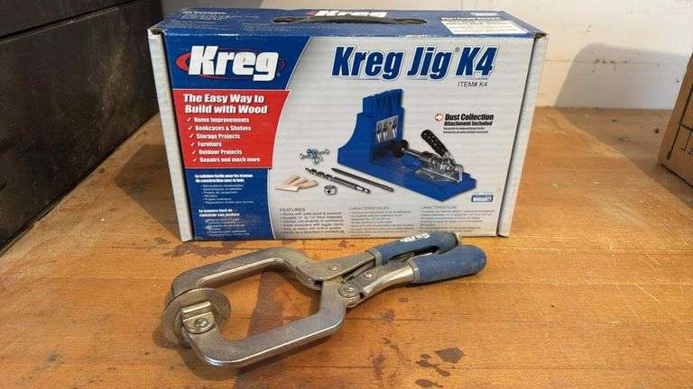 Kreg Jig K4 Pocket Hole Jig with Accessories, featuring Dust Collection, Easy to Use, Build with Wood, Versatile Applications, Dimensions: 12" x 8" x 6" (30.48 cm x 20.32 cm x 15.24 cm), Weight: 5 lbs (2.27 kg), Material: Plastic, Steel, Country of Manufacture: USA.