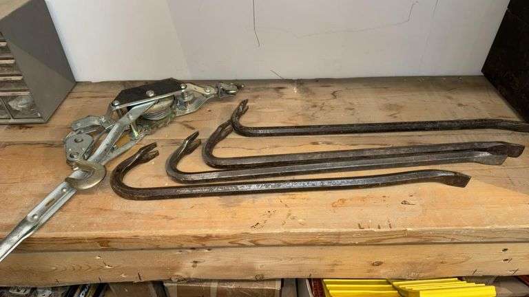 Large Come-a-long and 4 Crow Bars