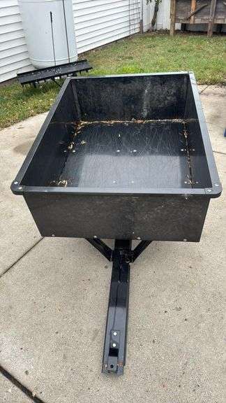 Black Steel 10 Cu. Ft. Utility Dump Cart with Dump Feature, Pin-style hitch, 13" wheel diameter, Steel material, Dimensions: Approximately 50" L x 30" W x 12" H (127 cm x 76 cm x 30 cm), Weight: Approximately 80 lbs (36 kg).