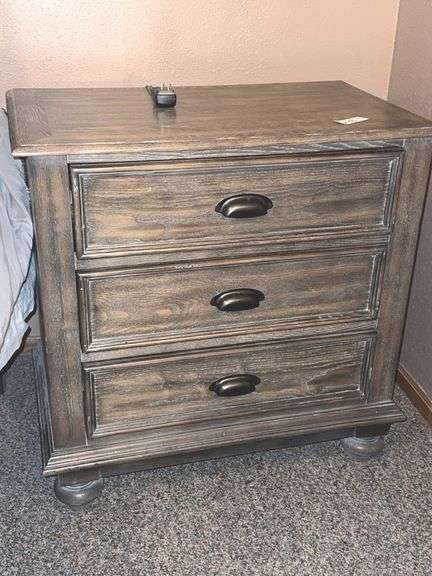 Measures 30” x 18” x 30”. Nightstand has two USB ports attached to the back of it with a plug