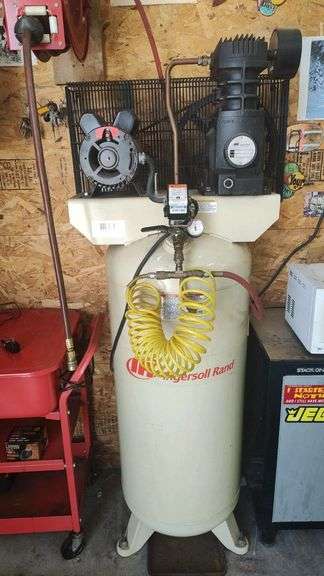 15 | Ingersoll Rand SS-5 Air Compressor, 5 HP, 60 Gallon Tank, 135 PSI Ingersoll Rand SS-5 Air Compressor, 5 HP, 60 Gallon Tank, 135 PSI, 230V, 18.1 CFM at 90 PSI, Serial Number: B061777. | Completed | $725.00 | Bidding complete | |