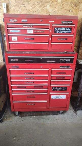 16 | Craftsman Tool Chest, 20 Drawers Craftsman Red Tool Chest, featuring 20 drawers, metal construction, approximate dimensions 54" H x 26" W x 18" D, approximate weight 250 lbs | Completed | $625.00 | Bidding complete | |