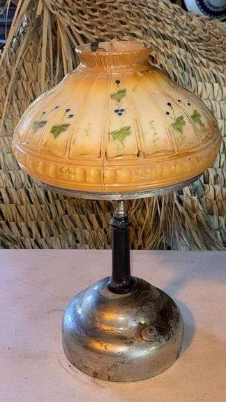 Vintage Oil Table Lamp with Glass Shade, Beige Floral Pattern