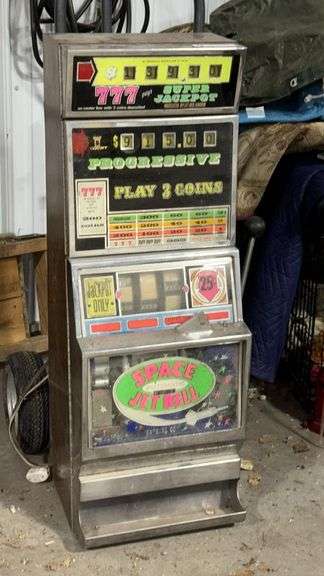 18 | Bally Space Jet Bell Slot Machine, 25¢ Coin, Progressive Jackpot Bally Space Jet Bell Slot Machine, dimensions 15x14x42 inches (38x36x107 cm), weight 250 lbs (113 kg), power requirements 120V AC. Believed to be a working unit, but it has not been tested or operated. Dolly not included | Completed | 1****8 27 bids | $270.00 | Bidding complete | ||
