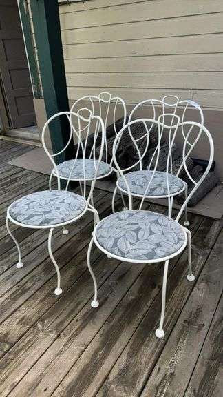 White Metal Outdoor Patio Chairs, Set of 4, Leaf Pattern Cushions
