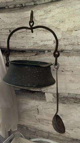 Cast Iron Cauldron with Metal Handle and Ladle, 10" x 5"