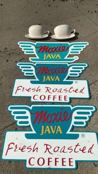 Moxie Java Vintage Advertising Signs and Light Fixtures, Winged Design
