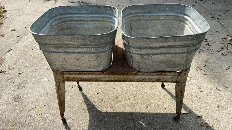 Galvanized Metal Wash Tub with Stand, 42"x20"x33", 3 Pieces, Rust on Stand