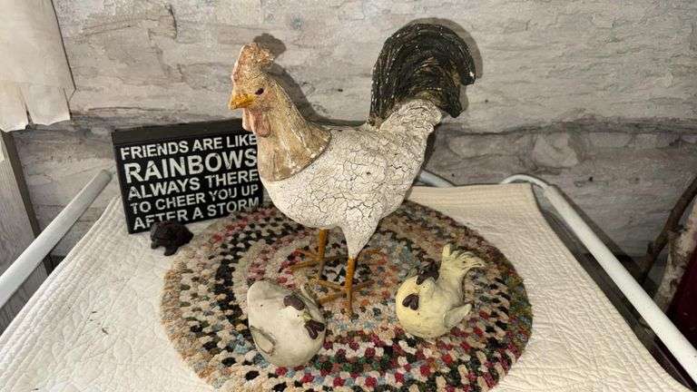 Decorative Chicken Figurines, 11" Large Chicken. Includes sign and 16" woven placemat