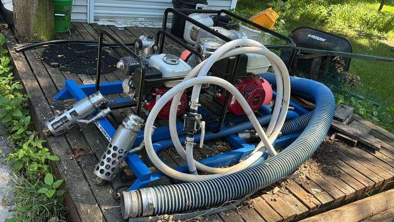 9 | Piranha Pumps PS-165ETL Dredge Dewatering System, Honda GX160/GX340 Engines Piranha Pumps PS-165ETL Dewatering System, featuring Honda GX160 and GX340 engines, gasoline fuel type, includes hoses and strainers, max flow rate approx. 158 GPM, max head approx. 360 ft, inlet/outlet size 2 inches, serial number 111903. | Completed | 2****6 95 bids | $5,100.00 | Bidding complete | ||