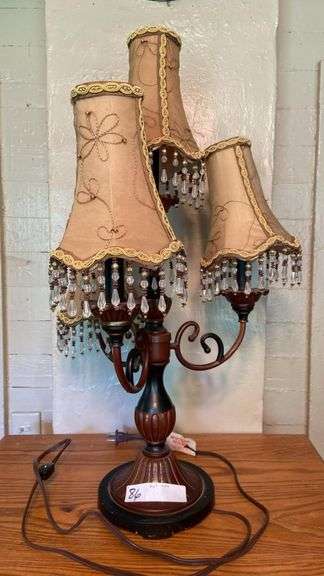 Traditional Table Lamp, 3-Light with Embroidered Shades and Beaded Fringe