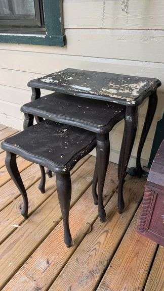 Black Wooden Nesting Tables, Set of 3, Traditional Style, Distressed Finish
