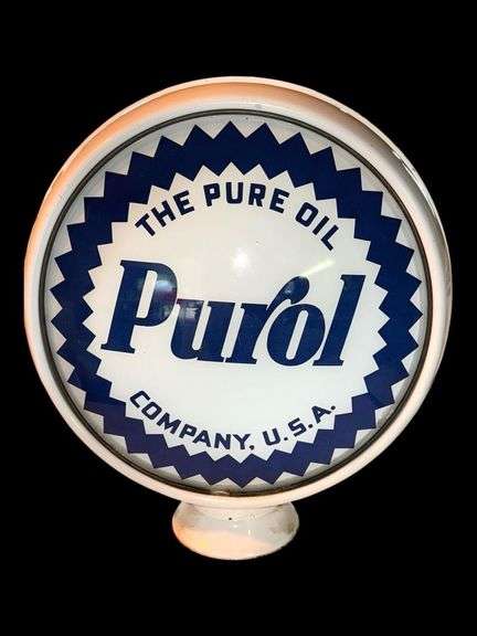 Vintage Purol The Pure Oil Gas Pump Globe, Glass & Metal