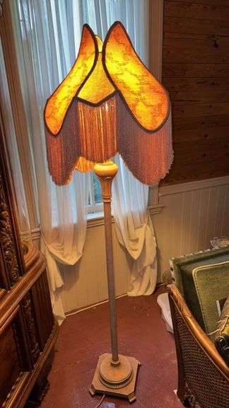 Vintage Floor Lamp, 66" Tall, Fabric Shade with Fringe