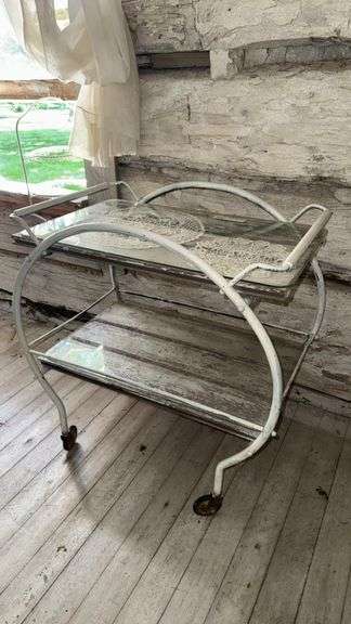 Vintage Serving Cart, Metal Frame, 27x18x30 inches, Glass Top