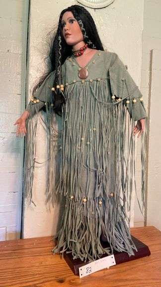 30" Collectible Doll with Long Fringe Dress and Beaded Necklace