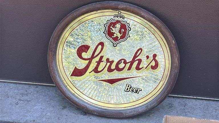 Vintage Stroh's Beer Sign, 21" Diameter, Gold and Red Design