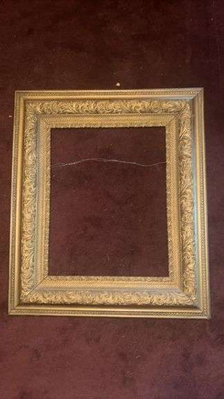 Ornate Gold Colored Picture Frame, Wood Material, Wire Hanging