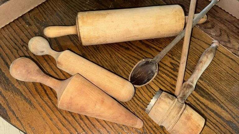 Vintage Wooden Kitchen Utensils Set - Rolling Pin, Spoon, Mallet, Pestles